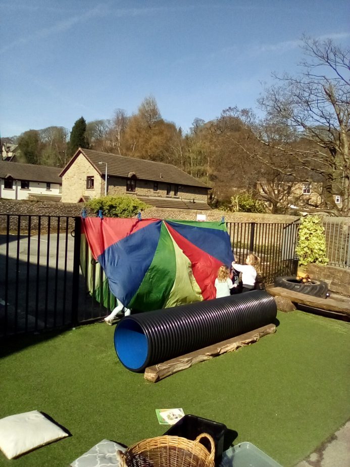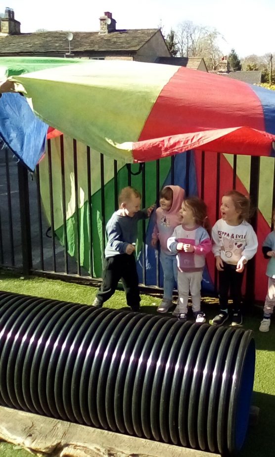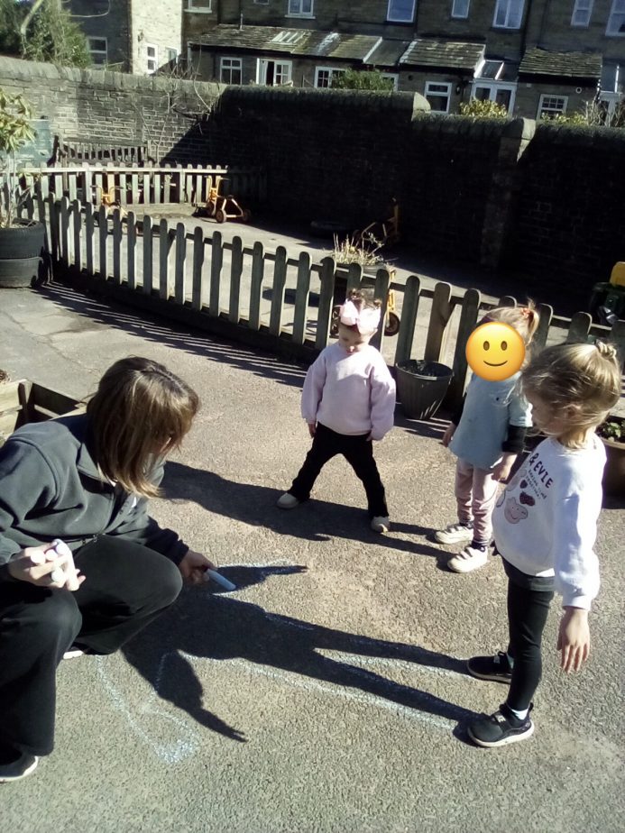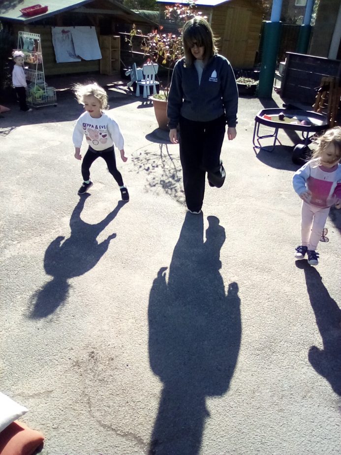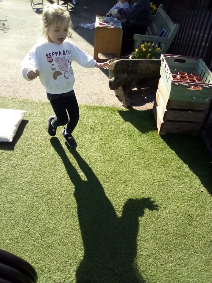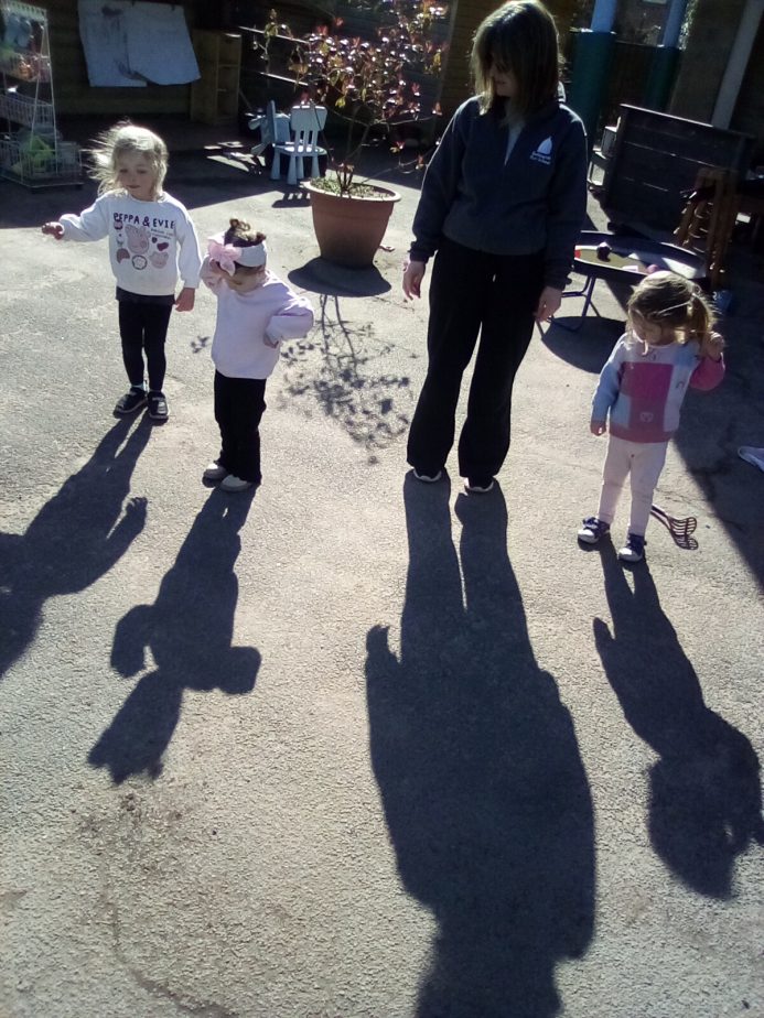 Today our little explorers have explored how shadows are made & noticed how the sun helps to create them. The children have loved watching their shadows stretch, shrink & dance as they move around.